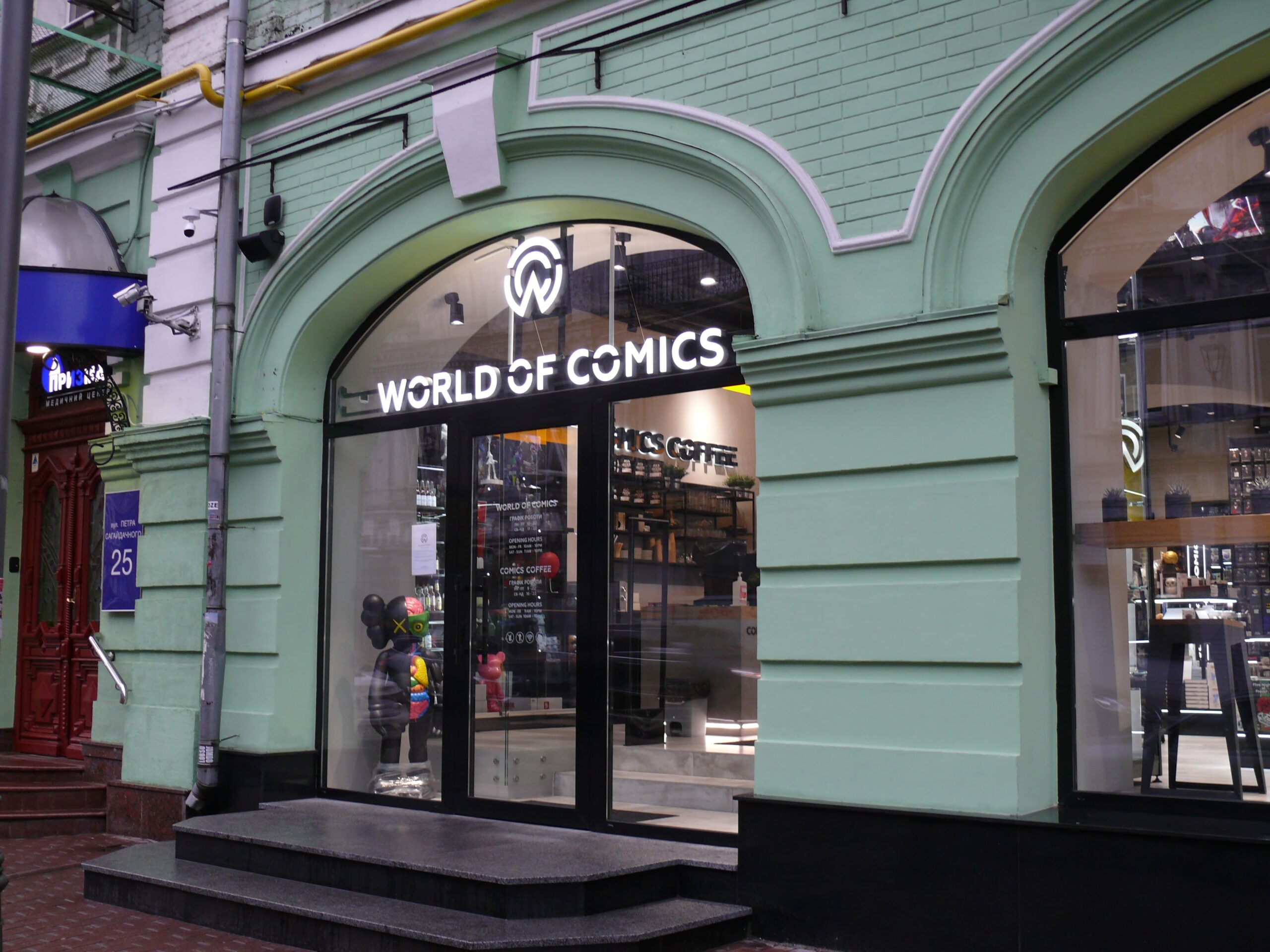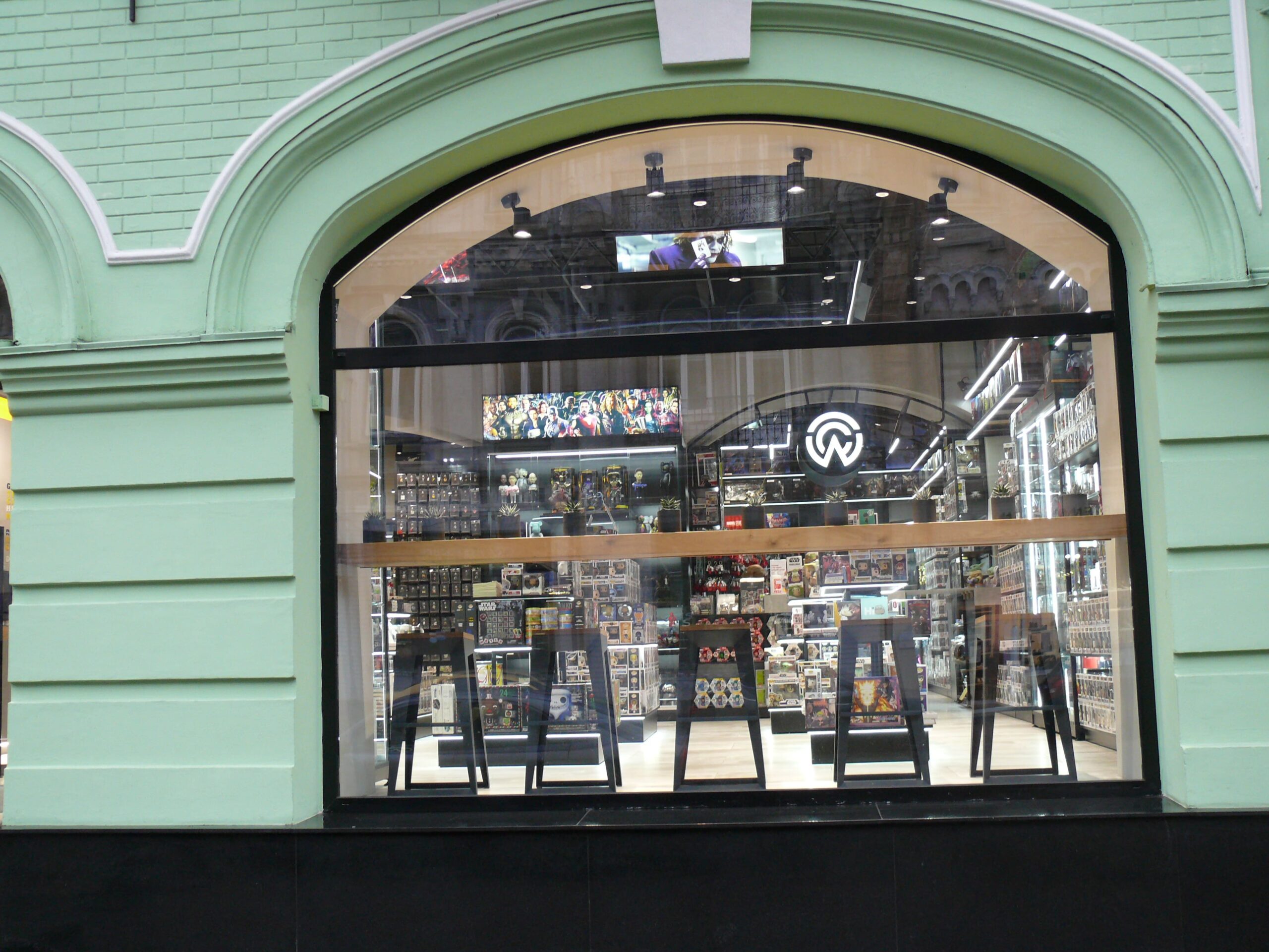 Shopwindows of the comic book store “World of Comics” is made in standard system Talisman T50 with double-glazed energy saving IGUs with high transparency.