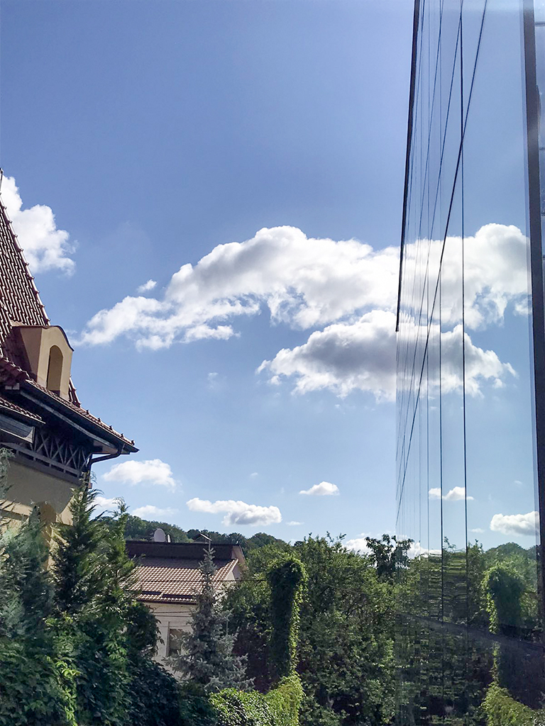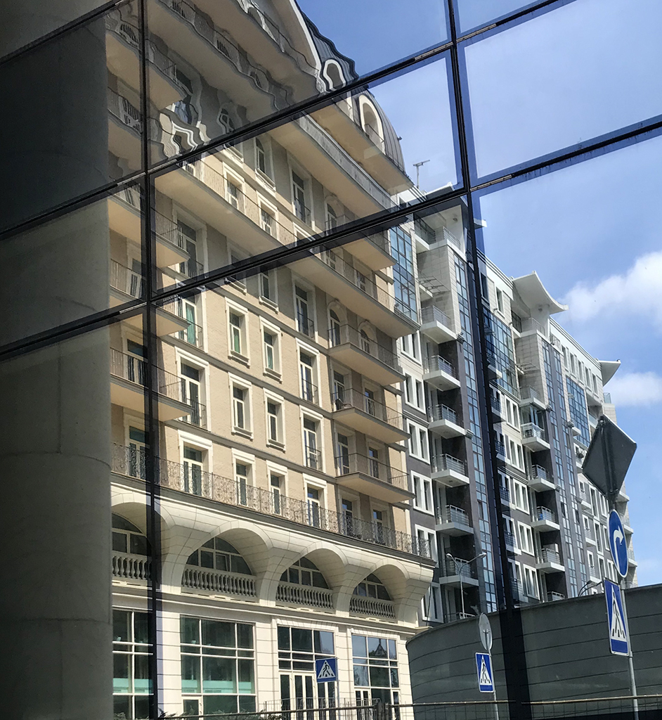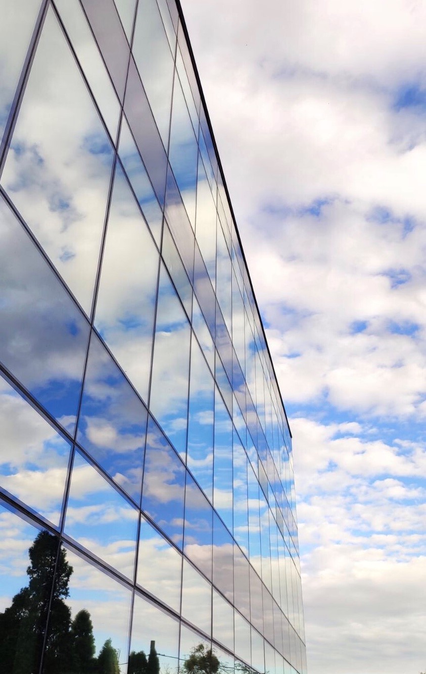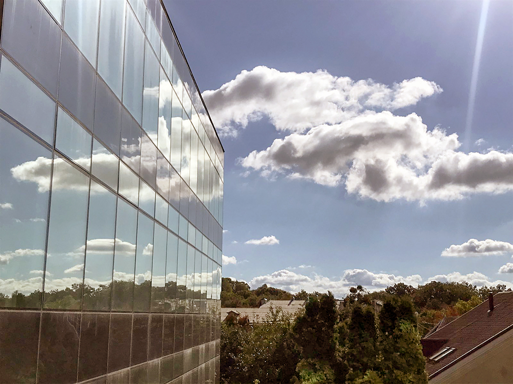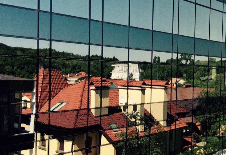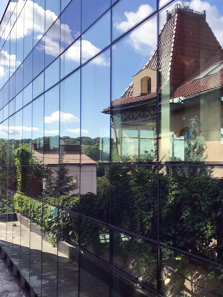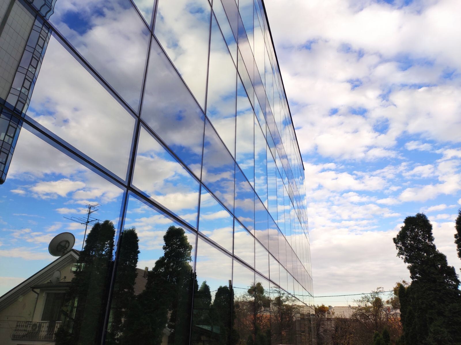 Для фасадного скління було обране сучасне мультифункціональне (сонцезахисне та енергозберігаюче) скло компанії Pilkington з покриттям, що само очищується. Це покриття забезпечує самостійне очищення скла в процесі експлуатації під впливом природних факторів (ультрафіолету та дощу) і дозволяє фасаду залишатися чистим у будь-яку пору року.