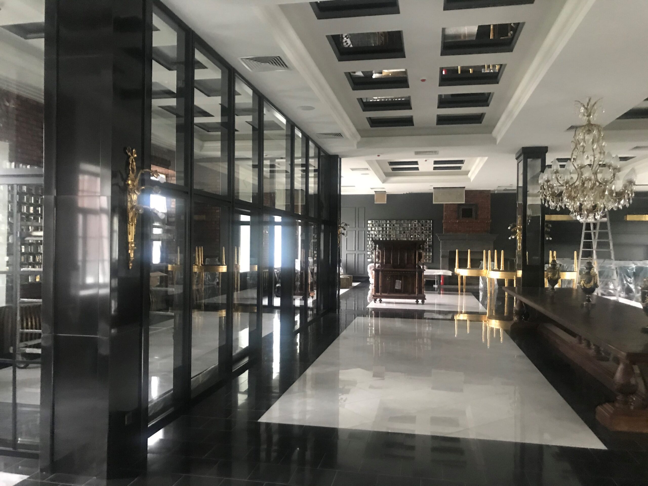 Для виготовлення дверних та віконних конструкцій в даному проекті було використано систему Aluprof MB50 із застосуванням енергозберігаючих двокамерних склопакетів. Внутрішні перегородки виконані зі звичайного загартованого скла, що забезпечує необхідний рівень безпеки персоналу та відвідувачів.
